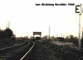 Oft schlossen sich einst die drei Schranken, wenn einer der Anschlüsse zu bedienen war. Der nachmittägliche Nahgüterzug aus Rochlitz war in den 70er Jahren noch mit einer 86er bespannt, die dann fleißig die Anschlüsse bediente.