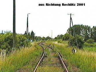Am westlichen Bahnhofskopf in Richtung Rochlitz lagen bis zum vollständigen Rückbau noch die Weichen zu den abgebauten Anschlussgleisen. Dabei ist auf dem rechten Bild bei genauerem Hinsehen ein nebenbahntypisches Kuriosum zu entdecken: