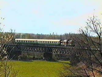 Der abendliche Personenzug (Bild oben) hat die Muldenbrücke passiert und schleicht nun mit Schrittgeschwindigkeit weiter nach Döhlen.