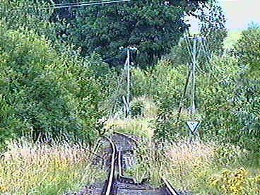 Rechts vom Streckengleis lag lange Zeit noch ein Stapel alter Betonschwellen. Bei genauerem Hinsehen sind die Alkalischäden deutlich erkennbar, die auch den noch genutzten Schwellen stark zusetzten und den schlechten Streckenzustand mit verursachten.