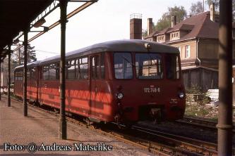 Die davor befindliche Drehscheibe ist inzwischen verfüllt. Hier waren früher Rangierloks zur Abwicklung des umfangreichen Güterverkehrs auf der gegenüberliegenden Bahnhofsseite und zur Bedienung des Gleisanschlusses zur Papierfabrik in Kriebetal beheimatet. Zum Schluss waren hier noch Kleinkraftwagen und Gleisbaumaschinen hinterstellt.