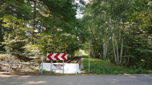 Zuvor verlässt der Radweg für wenige hundert Meter den Bahndamm, denn hier liegt das Streckengleis noch!