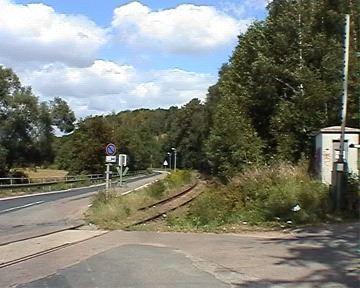 Die B107 stieg zur Kreuzung mit der Straße von Taura nach Mittweida an. Die Bahn führte dabei unter einer Brücke hindurch.