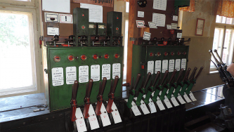 Bevor es von hier aus noch ein Stück weiter in Richtung Viadukt in Göhren geht, wird in Wechselburg erst ein kleiner Halt eingelegt und das durch den Verein in Betrieb gehaltene Stellwerk besichtigt.