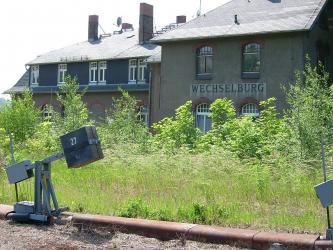 Der Bahnhof Wechselburg besitzt zwei Inselbahnsteige und ausgedehnte Gleisanlagen, die seiner einstigen Bedeutung als Trennungsbahnhof gerecht wurden.