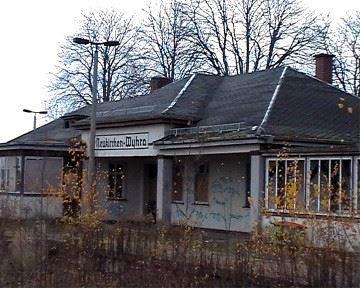 Nach wenigen Kilometern erreichen wir Neukirchen und über die Bahnhofstraße ist es nicht mehr weit zum am nördlichen Ortsrand gelegenen Bahnhof Neukirchen-Wyhra. Gemäß seiner Aufgabe als Abzweigbahnhof erhielt er ein massives Empfangsgebäude mit einem integrierten Stellwerk zur Bedienung der Einfahrsignale.