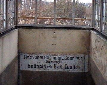 In der Unterführung stand noch 2004 angeschrieben, von welchem Bahnsteig aus man nach Bad-Lausick fahren kann. Aber das geht nun schon seit mehr als 70 Jahren nicht mehr.