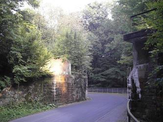 In einer ansteigenden Linkskurve wurde der Bahnhof Berbersdorf verlassen. Gleich nach den Einfahrweichen aus Richtung Hainichen überquerte die Bahn die Straße hinauf nach Arnsdorf. Die Durchfahrthöhe unter der Bahnbrücke war so gering gering, dass sie Busse nicht unterqueren konnten. Nach der Betriebseinstellung der Strecke blieb ein LKW an der Brücke "hängen" und beschädigte sie so stark, dass die Brücke ausgehoben werden musste. Nun muss kein Fahrzeug mehr die lichte Höhe beachten.