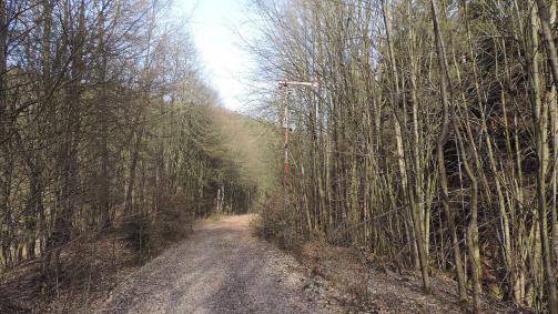 Nach der Brücke geht es in einer steigenden Linkskurve weiter, vorbei am Einfahrsignal aus Richtung Hainichen. Auch dieses Signal war ursprünglich zweiflüglig, aber der untere Flügel wurde wohl von "Eisenbahnfreunden" erreicht ... Nun steht ein weiterer romantischer Streckenabschnitt bis Schlegel bevor.