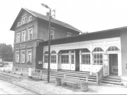 Das Empfangsgebäude steht heute leer und verfällt zusehends. Früher gab es hier sogar eine Bahnhofswirtschaft, sowie eine Postagentur und auf der Bahnhofs- und zugleich Ladestraße war so viel Betrieb, dass sie Anfang der 30er Jahre verbreitert werden musste.