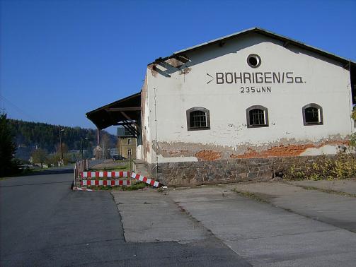 Wenn man heute auf dem Gelände des Bahnhofes Böhrigen herumstreunt, kann man kaum glauben, dass hier einst Züge überholte und kreuzten, dass reger Güterverkehr herrschte und fleißig rangiert wurde. Der Güterschuppen auf der Seite des Empfangsgebäudes existiert schon seit Eröffnung der Strecke 1874. Im Jahre 2007 wurde er äußerlich aufgearbeitet - er sieht damit wesentlich gepflegter aus als das Empfangsgebäude.