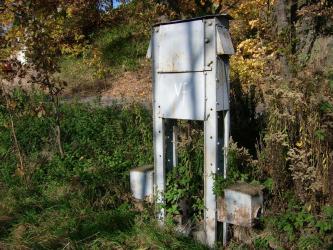 Noch Jahre nach der Betriebseinstellung - selbst als schon Gleise abgebaut waren und der Straßenübergang überteert war, ragten die Schrankenbäume weiter mehr oder weniger senkrecht in den Himmel. 2009 ist diese Anlage aber nun endgültig Geschichte.