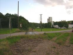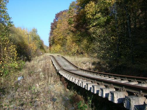 Nur einige Meter hinter dem Bahnübergang wurde die Weiche zu einem nach rechts abzweigenden Anschlussgleis befahren. Hier wurden Großtransporte für das E-Werk Etzdorf (Trafos etc.) zugestellt. Der Anschluss umfasste einst zwei Gleise und führte in die in Fahrtrichtung rechts noch zu erkennende Schamottefabrik Beier. Hier waren 2005 noch einige Reste der ehemaligen Gleisanlagen zu erkennen. Die Anschlussweiche zeigte in Richtung Grunau und verblieb bis zur Betriebseinstellung im Streckengleis.