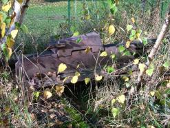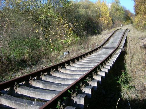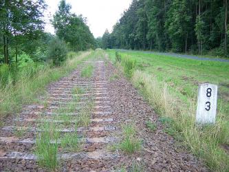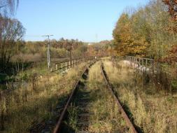n einem Linksbogen schwenkte die Strecke mehr nach Osten und wendete sich dem Ort Böhrigen zu. Ein kleiner Durchlass für einen Bach wurde passiert. Bach und die nahe Striegis haben beim Hochwasser 2002 ganze Arbeit geleistet und an dieser Stelle den gesamten Bahnkörper fortgerissen.