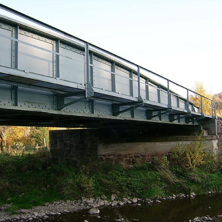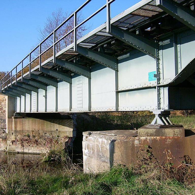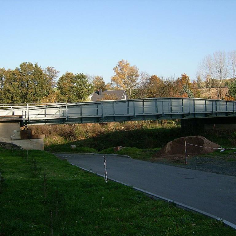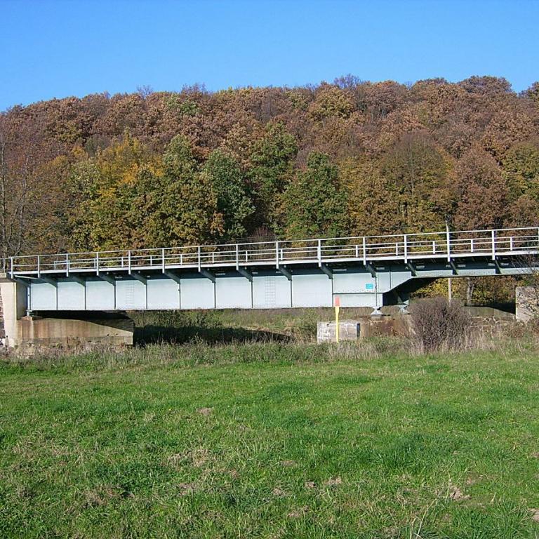 Dem Haltepunkt Grunau schließt sich eine Stahlträgerbrücke an, deren Bauweise auf dieser Strecke einmalig ist. Die oben liegenden Stahlträgerbögen wurden 1982/83 von Baupionieren der NVA eingesetzt. Inzwischen sind diese - und die wenige Meter weiter folgende Brücke wieder abgängig und ihre geringe Durchfahrthöhe ist den Anwohnern schon lange ein Ärgernis. So dürfte es nur noch eine Frage der Zeit sein, bis man die Brücken aushebt und den Stahlschrott zu Geld macht.