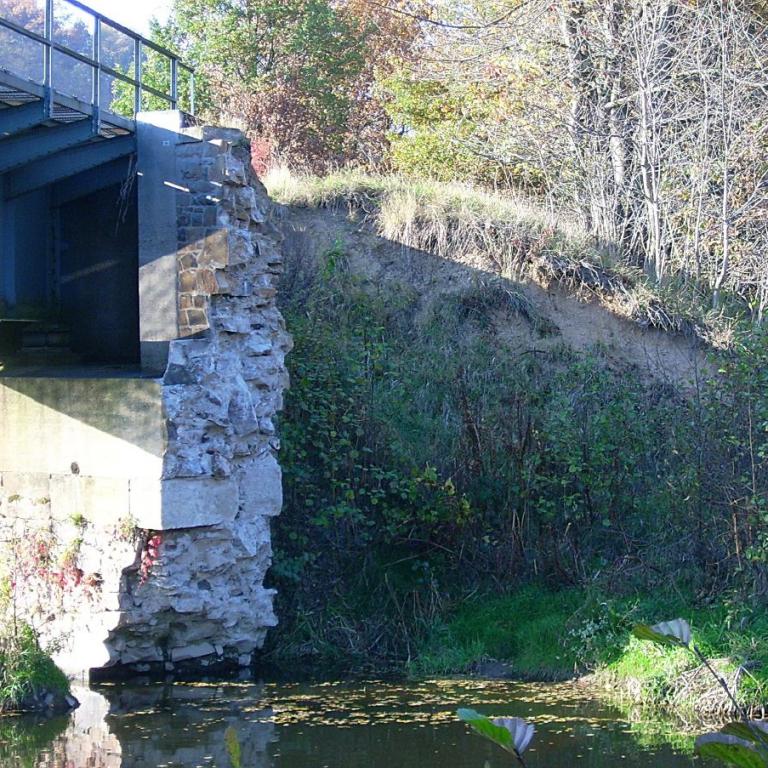 Nach wenigen hundert Metern kam die nächste Striegisbrücke. Auch die Brücke in KM 5,1 (RW) - kurz vor dem Haltepunkt Grunau - hat beim Hochwasser 2002 Schaden genommen, den wohl keiner mehr beheben wollte.