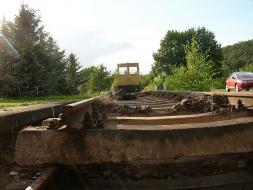 2007 ließ die Gemeinde die Anliegerstraße, welche auf dem Körper des Ladegleises liegt, sanieren. In diesem Zusammenhang wurde am Übergang vor dem Bahnhof Grunau ein Stück Schiene herausgehoben und der Übergang zugeteert. Dabei kam ein Fahrzeug der DB zum Einsatz. Sein Abtransport von hier kann nur per Straße erfolgen, denn auf beiden Seiten endet das Gleis irgendwann...