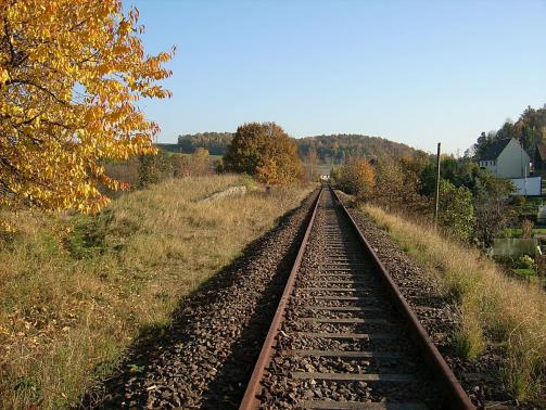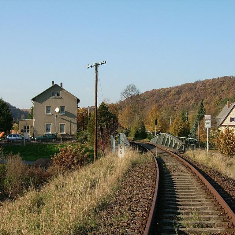 Eigentlich ist der Ort Grunau nur wenige Kilometer von Roßwein entfernt. Aber um den Berg Hohenlauft nicht überwinden oder gar durchtunneln zu müssen, wählte man die Trassierung der Bahn durch das Striegistal und nahm den Umweg in Kauf, der auf der Karte deutlich sichtbar wird.