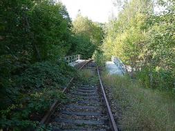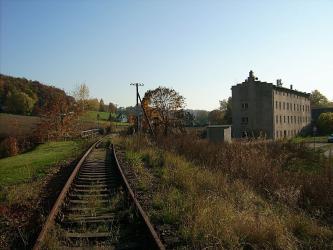 Heute ist die Papierfabrik nebst ihrer Schornsteine abgerissen und nur noch die verrostete Anschlussweiche zeugt von der Existenz eines Bahnanschlusses.