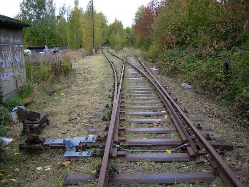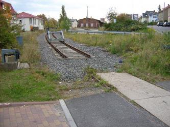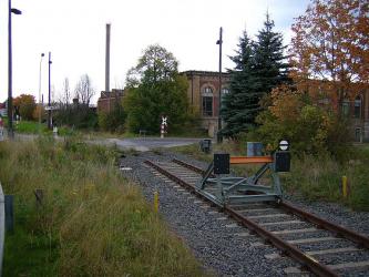 In Höhe des Einfahrsignales führte früher links ein Anschlussgleis zum "VEB Radiogehäusewerk" sowie zu einem Dampfsägewerk, welches sogar eine 600 mm-Schmalspurbahn betrieb. Heute ist dieser Anschluss höchstens noch als verbreiterter Gartenweg zu erkennen, den die Laubenpieper zum Parken ihrer Autos nutzen.