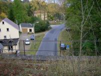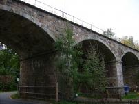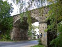 Noch einige Kurven sind es, bis die Strecke den Hainichener Ortsteil Crumbach erreicht. Das Tal wird mit einer 57 m langen Steinbogenbrücke überquert, die seit ihrer Errichtung 1873 kaum Veränderungen erfahren hat und heute entsprechend verfallen aussieht.