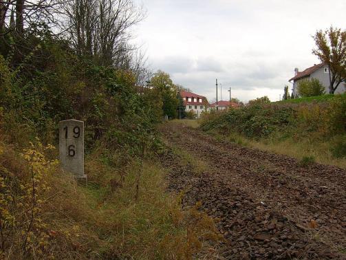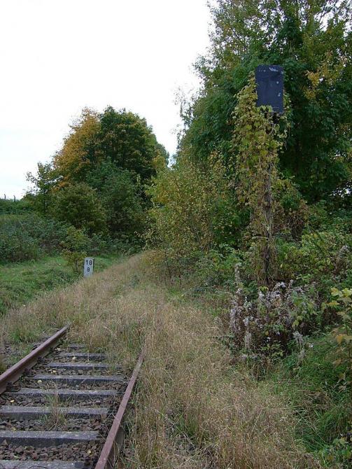 Nun geht es westlich am Neubaugebiet von Hainichen vorbei. Am Ende der langen Geraden steht das Vorsignal, welches aber wohl zu Betriebszeiten bereits außer Betrieb genommen wurde.
