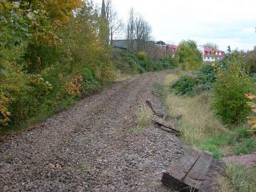 Rechtsseitig senkt sich der einstige Anschluss der Ziegelwerke auf das Streckenniveau ab. Die Anschlussgleise wurden mehrmals erweitert, im Bereich der Ziegelei fuhr eine 600 mm Lorenbahn sowie zu einer der Gruben eine 2,5 km lange 900 mm Bahn. Die Anlagen sind nach der Wende stillgelegt worden. 1991 wurde der Bahnanschluss aufgegeben.