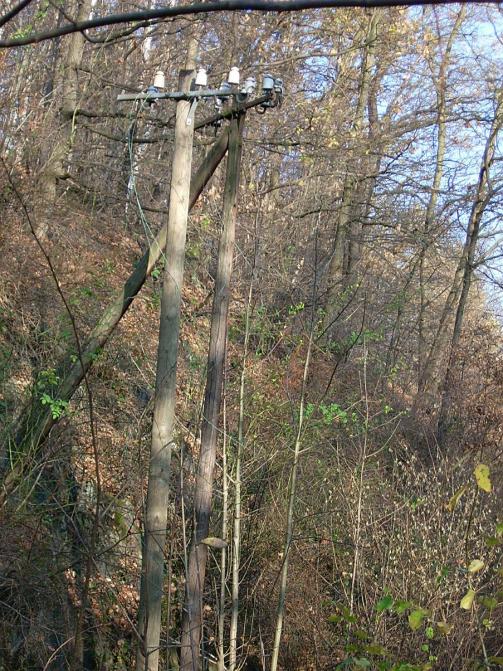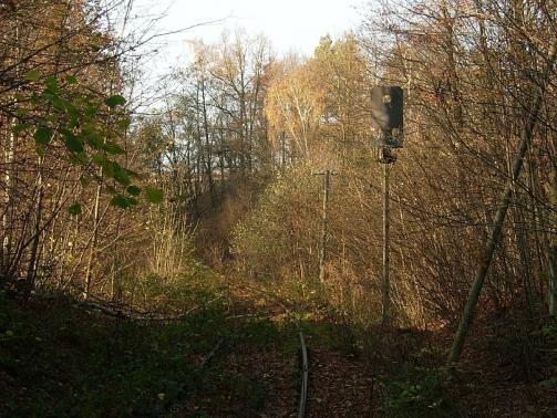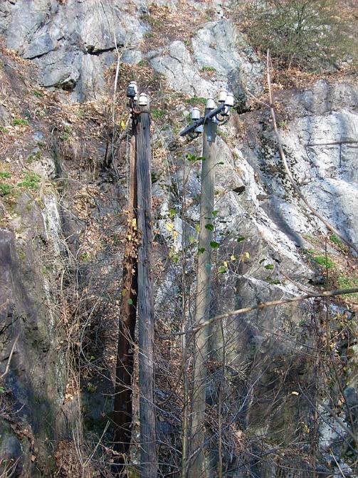 Noch kurz vor der Einstellung des Bahnbetriebes hatte man damit begonnen, allzu verwitterte Telegraphenmasten gegen neue auszutauschen. Aber die Stilllegung kam schneller...