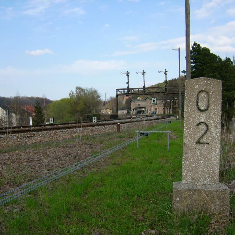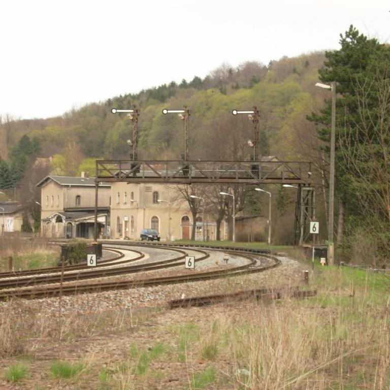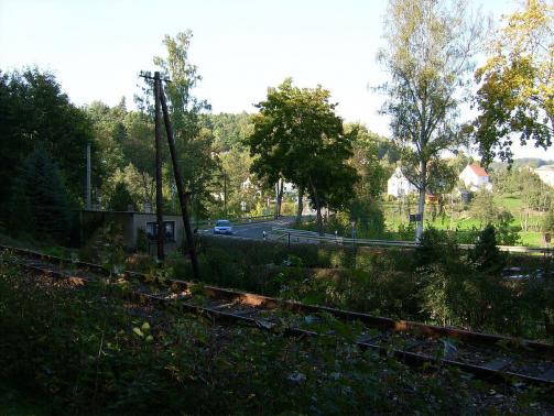 Am Fuße des Berges Hohenlauft geht es zwischen Straße, einigen Häusern und der Bahnlinie recht eng zu. Beim Bau der Bahn wurde die Straße, die einst "hinter" den Häusern entlang führte, vor dieselben verlegt. Seitdem zeigen die Haustüren der Häuser "nach hinten" - zur Bahn nach Hainichen!