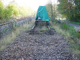 Das Hainichener Streckengleis endet heute nach wenigen Metern an einem Prellbock.