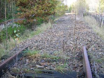 Beim Neubau der Muldenbrücke der BC hatte man eine Zufahrt geschaffen und das Streckengleis nach Hainichen einfach zugeschüttet. Es braucht ja eh keiner mehr...