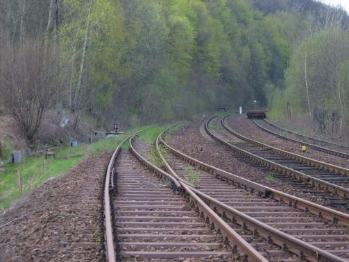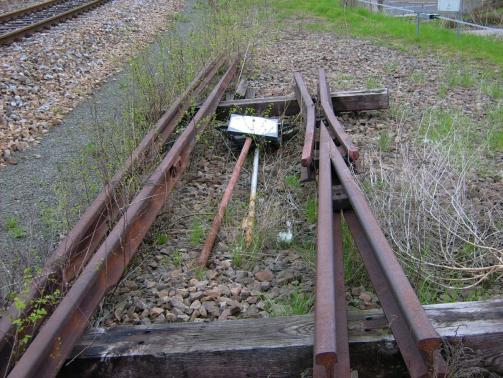 Die Reste der Weiche zum Hainichener Streckengleis.