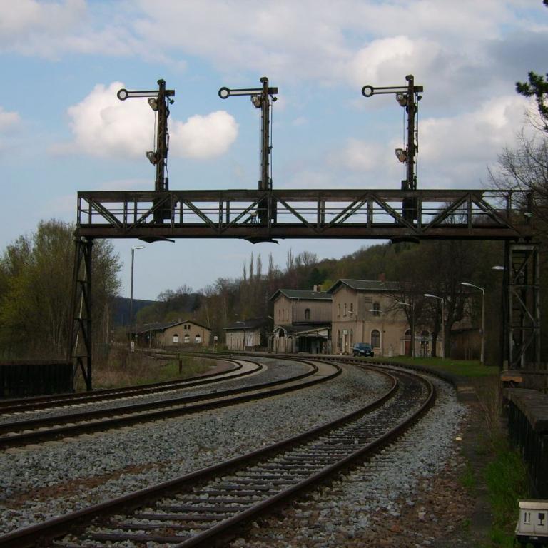 Beginnen wir unsere Suche nach Eisenbahnrelikten am Kilometer 0,0 - in Roßwein. Der Bahnhof war schon seit Inbetriebnahme der Borsdorf-Coswiger Eisenbahn 1868 in Betrieb. Mit dem Bau und der Eröffnung der Striegistalbahn bis 1874 waren die ersten Erweiterungen des Bahnhofes nötig. Weitere folgten, so dass der Bahnhof in seiner Blütezeit - nach dem zweigleisigen Ausbau der BC-Linie und der Eröffnung mehrerer Anschlussstellen - eine maximale Ausdehnung von 5 durchgehenden Gleisen und zahlreichen Lade- und Anschlussgleisen besaß.
