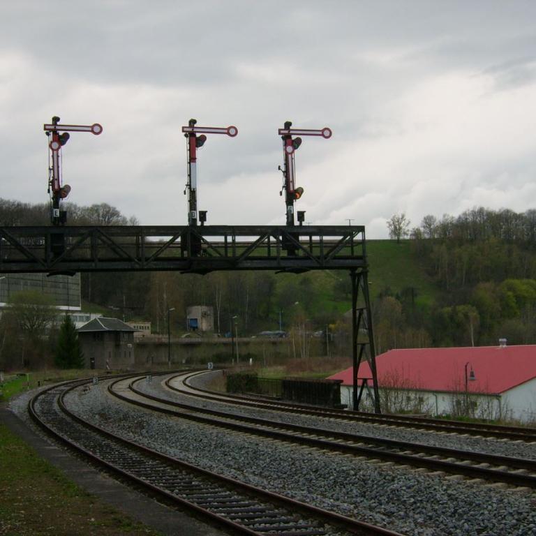 Am Güterbahnhof liegt noch das inzwischen abgebaute Einfahrsignal aus Richtung Hainichen.