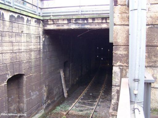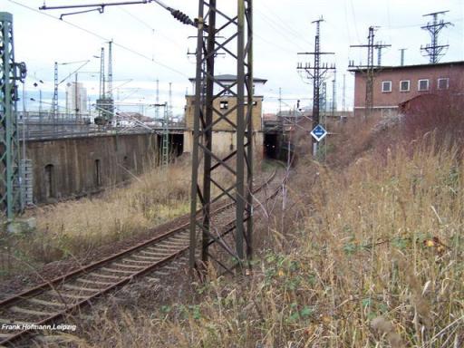 Im Gleisvorfeld des Hbf. wurde die Tunnelzufahrt mit Bauschutt vom Leipziger City-Tunnel verfüllt. Die Zufahrt auf der Gegenseite wurde ihrer Fahrleitung beraubt, war aber noch offen.