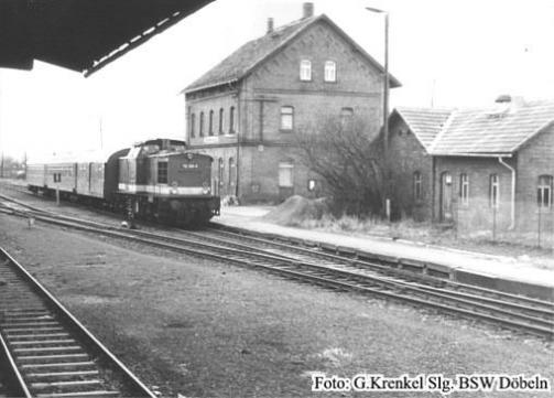 Oft schlossen sich einst die drei Schranken, wenn einer der Anschlüsse zu bedienen war. Der nachmittägliche Nahgüterzug aus Rochlitz war in den 70er Jahren noch mit einer 86er bespannt, die dann fleißig die Anschlüsse bediente.