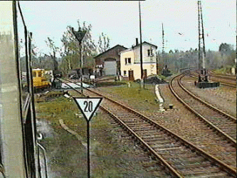 Gleich hinter dem Ausfahrsignal des Gleises 12 lag die Abzweigweiche. Die Strecke nach Rochlitz wendet sich sogleich nach links, während ein weiteres Gleis zum ehemaligen Lokschuppen verzweigte und später in das Streckengleis nach Riesa mündet.