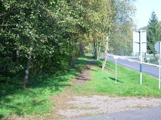 Nun wird rechter Hand auch der Bahndamm wieder sichtbar, den man kurz darauf unterquert.