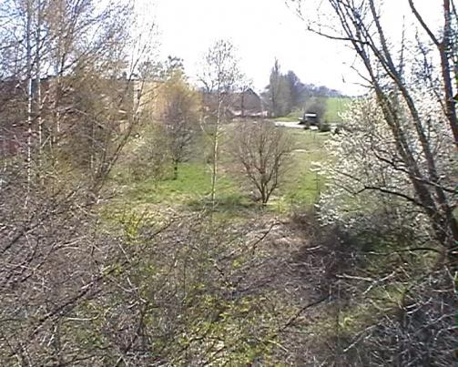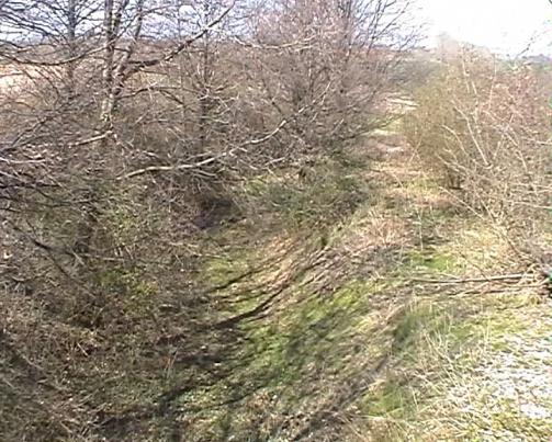 Von Schrebitz kommend verliert sich der Bahndamm an dieser Stelle und führte in einem Linksbogen zum Bahnhof Kiebitz.