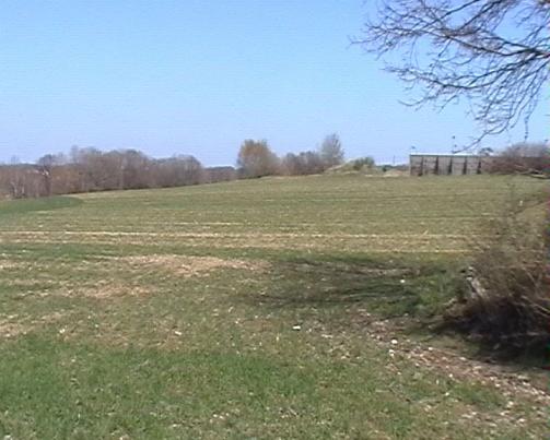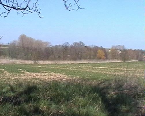 Hier führte die Bahn weiter über das Feld und wandte sich in engem Linksbogen dem Bahnhof Kiebitz zu. Auch an dieser Stelle ist der Bahndamm untergeackert worden.