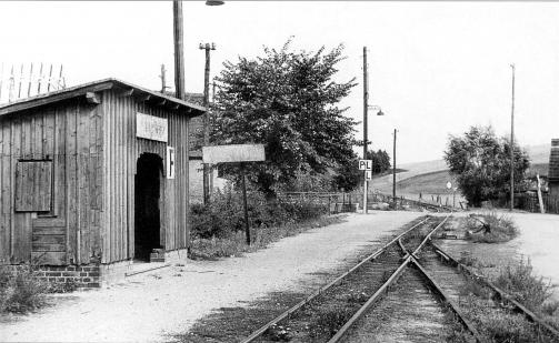 Auf dem Fundament der hölzernen Wartehalle hat man später ein massives Steingebäude errichtet. Darin befindet sich eine Waage, deren Wiegefläche heute auf dem Bahnkörper eingebaut ist.