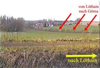 Hier der Blick in Richtung Einschnitt, in dem die Strecke nach rechts wegschwenkte. Hinter uns liegt die Steigung von Görna herauf, "neben" uns der Bahnhof Löthain.