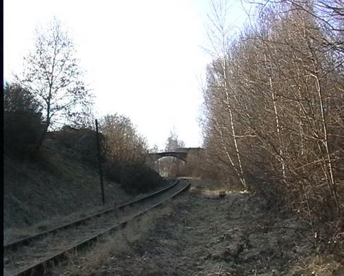 Regelspur und Schmalspurstrecke unterquerten nun gemeinsam die "Apothekerbrücke", bevor sich sie nach einem Rechtsbogen voneinander trennten.