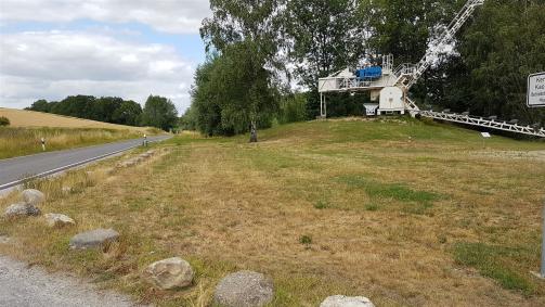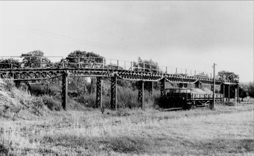 Hier existierte einst eine hölzerne, seit 1954 eine stählerne Hoch-Laderampe, von der aus Feldbahn-Loren Kaolin in bereitgestellte Regelspurwagen auf Rollwagen verladen wurde.
