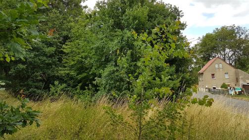 Weiter in Richtung Mahlis ist hier kein Durchkommen mehr. Wer die Strecke mit dem Rad abfährt, muss also weiterhin auf der Straße bleiben. Schade - hier könnte nach einer Rodung des Gestrüpps und dem Ebnen des Bahndammes mit wenig Mitteln ein Radweg entstehen.