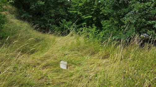 Heute ist das Areal des Haltepunktes völlig zugewachsen. Einzig der Kilometerstein kündet noch davon, das hier einmal eine Bahn gefahren sein muss.