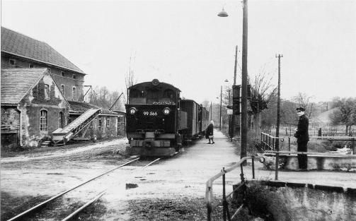 Auf dem Fundament der hölzernen Wartehalle hat man später ein massives Steingebäude errichtet. Darin befindet sich eine Waage, deren Wiegefläche heute auf dem Bahnkörper eingebaut ist.